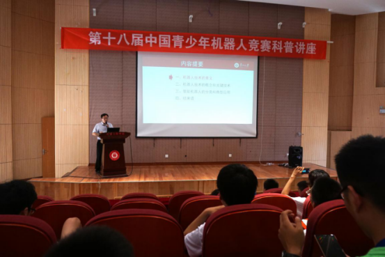 七月的筑城,萬木蔥蘢,涼爽怡人。2018年7月22日下午2:00,第十八屆中國青少年機器人競賽暨2018世界青少年機器人邀請賽進程的第三日,貴州大學機械工程學院院長李少波教授應邀于機械工程學院報告廳為全國的參賽選手們做了題為“機器人前沿技術”的科普講座。
