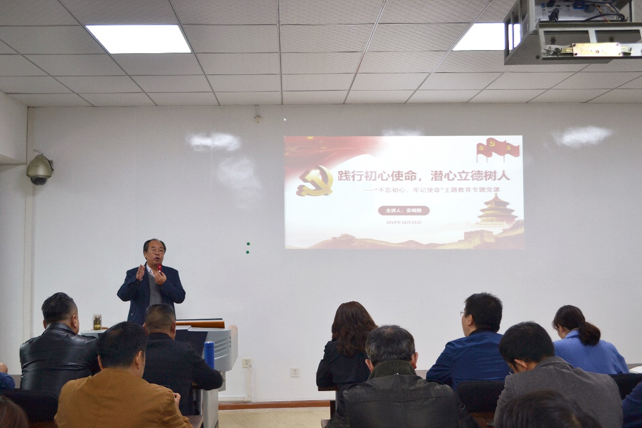 機(jī)械工程網(wǎng)站訊(記者 楊誠|攝影 楊誠)10月25日上午十時(shí),機(jī)械工程學(xué)院黨委書記安明剛為全院師生黨員上題為“踐行初心使命,潛心立德樹人”專題黨課。學(xué)院師生黨員100余人在機(jī)械樓416聆聽了黨課 。本次黨課由機(jī)械工程學(xué)院黨委副書記代祥社主持。