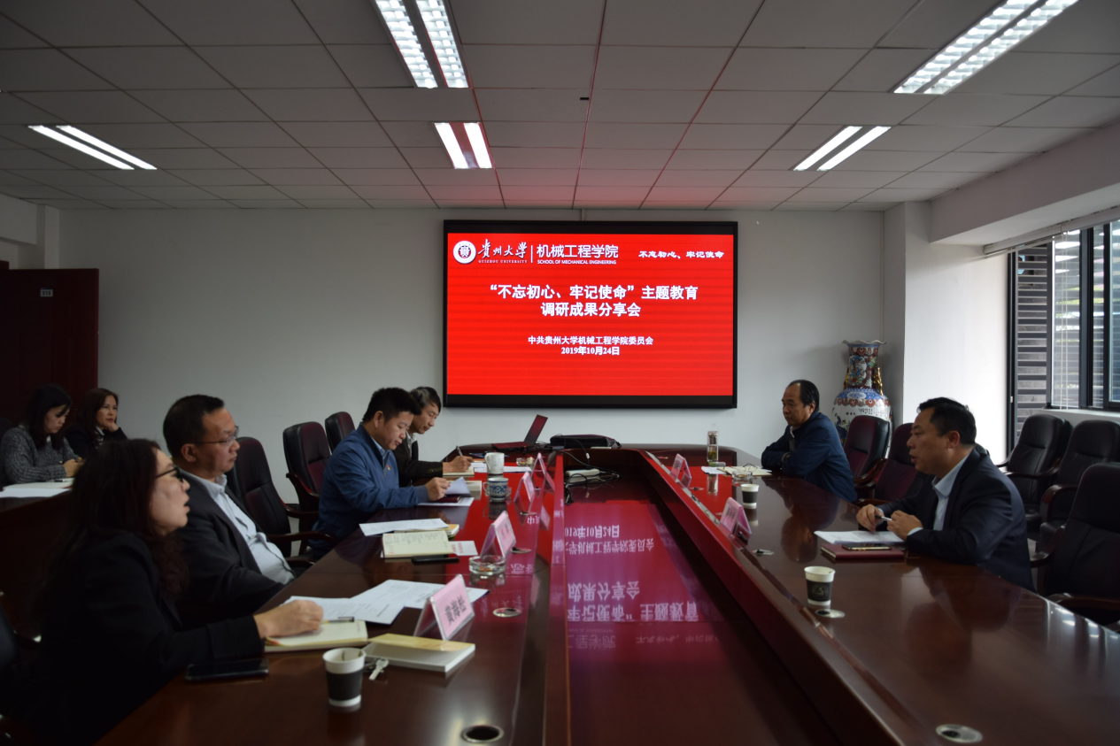 10月24日,機(jī)械工程學(xué)院黨委理論學(xué)習(xí)中心組在機(jī)械樓518召開“不忘初心、牢記使命”主題教育調(diào)研成果交流會(huì)。學(xué)院黨委書記安明剛,院長李少波,黨委副書記代祥社,副院長楊勤、何鋒,教育部重點(diǎn)實(shí)驗(yàn)室副主任黃海松等黨政領(lǐng)導(dǎo)班子成員參加分享會(huì)。會(huì)議由安明剛主持。
