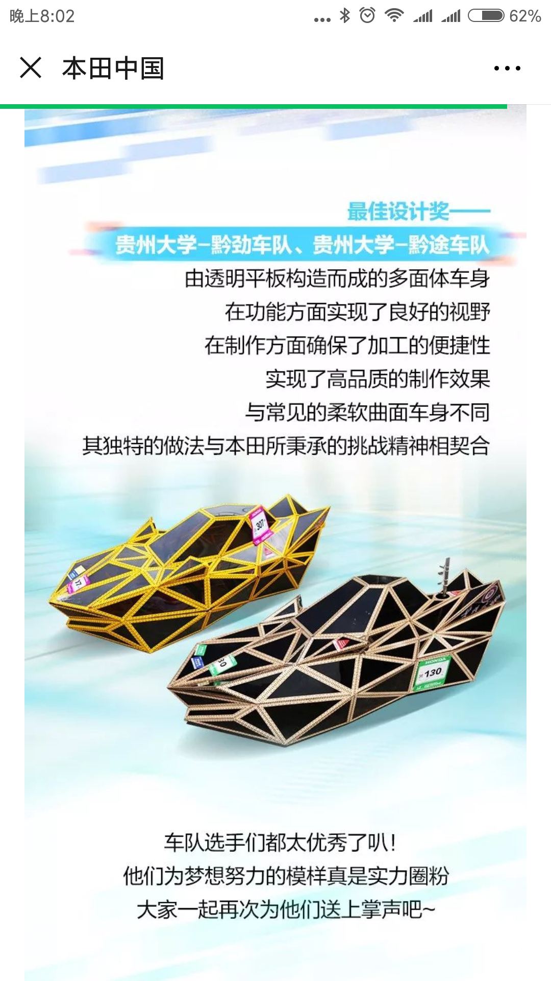 貴州大學(xué)榮獲201913Honda中國(guó)節(jié)能競(jìng)技大賽雙項(xiàng)最佳設(shè)計(jì)獎(jiǎng)
