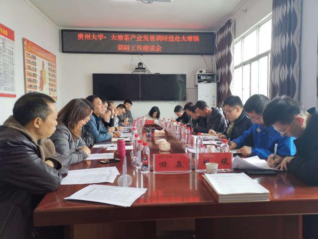 上午10:30,在平塘縣大塘鎮(zhèn)人民政府三樓會議室舉行座談會。會議上大塘鎮(zhèn)黨委副書記、鎮(zhèn)長趙中策簡要匯報(bào)大塘鎮(zhèn)茶產(chǎn)業(yè)發(fā)展?fàn)顩r。大塘鎮(zhèn)是一個(gè)具有茶園基地面積六萬多畝,其中可采摘茶園四萬多畝。通過近幾年的大力發(fā)展,依托本地茶產(chǎn)業(yè)優(yōu)勢,茶葉品質(zhì)優(yōu)良,產(chǎn)值高效,大塘鎮(zhèn)現(xiàn)已成為省級茶產(chǎn)業(yè)示范基地,使當(dāng)?shù)刎毨魪耐恋亓鬓D(zhuǎn)資金中直接獲取利益,大規(guī)模的茶產(chǎn)業(yè)密集型勞動力需求既增加了百姓的務(wù)工收入又提升培訓(xùn)技能。趙中策鎮(zhèn)長表示希望能夠借助與貴州大學(xué)合作平臺,通過邀請專家教師進(jìn)行指導(dǎo),為大塘鎮(zhèn)基層文化人才創(chuàng)造良好的成長環(huán)境,提升大塘鎮(zhèn)的文化軟實(shí)力,更好的促進(jìn)大塘鎮(zhèn)經(jīng)濟(jì)與社會發(fā)展。平塘縣茶產(chǎn)業(yè)辦公室副主任陳安明介紹了平塘產(chǎn)業(yè)的發(fā)展?fàn)顩r,現(xiàn)生產(chǎn)的茶葉主要銷往廣西,廣東等地。根據(jù)副主任陳安明介紹,大塘鎮(zhèn)茶葉實(shí)行無有機(jī)化學(xué)種植,原生態(tài)茶品質(zhì),茶葉在化學(xué)含量檢測中,其檢測出的化學(xué)成分遠(yuǎn)低于其他的城鎮(zhèn),贏得多家合作商。