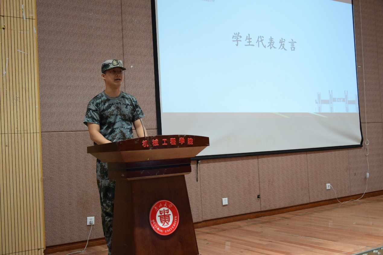 隨后,由新生學生代表連順禹同學上臺發(fā)言,他首先表達了來到貴州大學的喜悅。隨后回憶起備考的日子,希望同學們來的新的平臺后,不要忘記自己的初心,謹遵老師的教誨,發(fā)揮主觀能動性,投入更多的時間和精力去學習。為了美好的未來去拼搏奮斗。