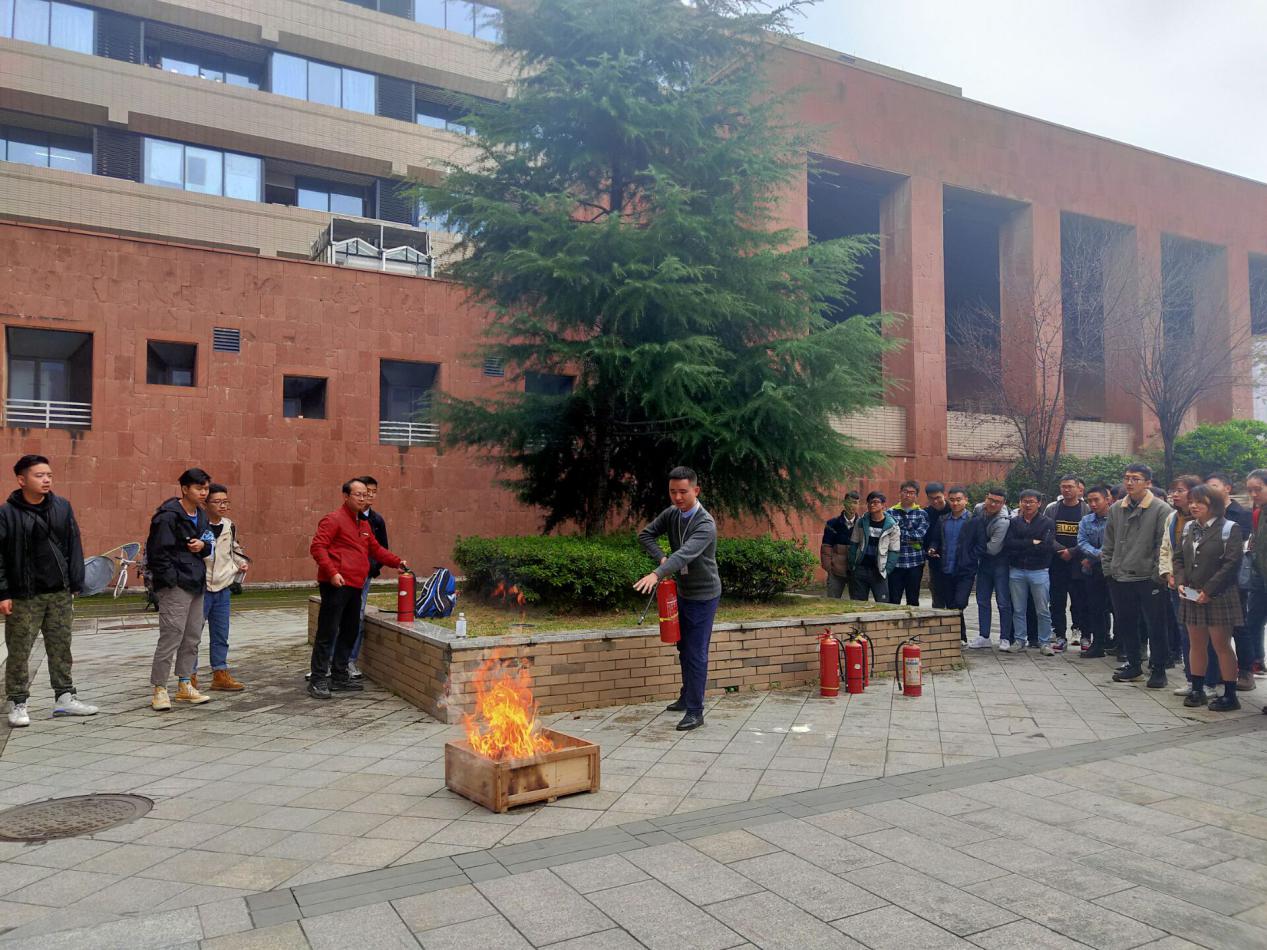 宣講會結(jié)束以后,在學(xué)院樓下的空曠處,進(jìn)行消防實(shí)訓(xùn)演習(xí)。艾老師一個步驟一個步驟的教老師和同學(xué)們?nèi)绾握_使用滅火器。隨后,還讓老師、同學(xué)們實(shí)踐操作,讓他們真正的學(xué)會使用滅火器滅火。大家也積極參加,現(xiàn)場氛圍熱烈。