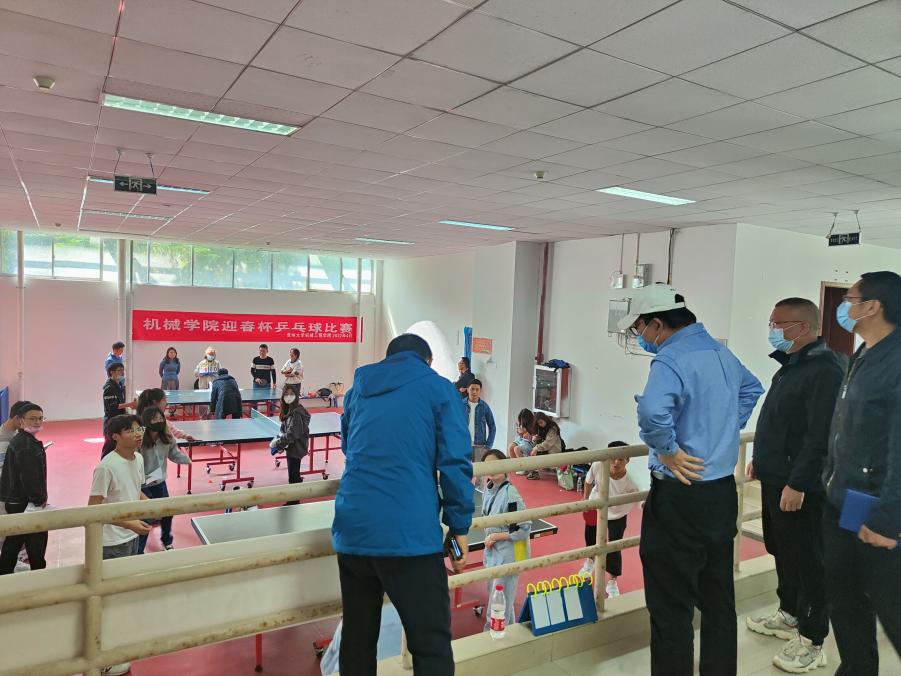 校黨委李建軍書記一行蒞臨活動(dòng)現(xiàn)場(chǎng)指導(dǎo)觀摩,并與同學(xué)們進(jìn)行親切交流。他對(duì)機(jī)械工程學(xué)院乒乓球賽十分贊賞,并寄語同學(xué)們要德智體美勞全面發(fā)展的厚望,通過體育鍛煉,強(qiáng)健體魄,舒展身心,增進(jìn)友誼,也祝愿同學(xué)們可以賽出風(fēng)格和水平。