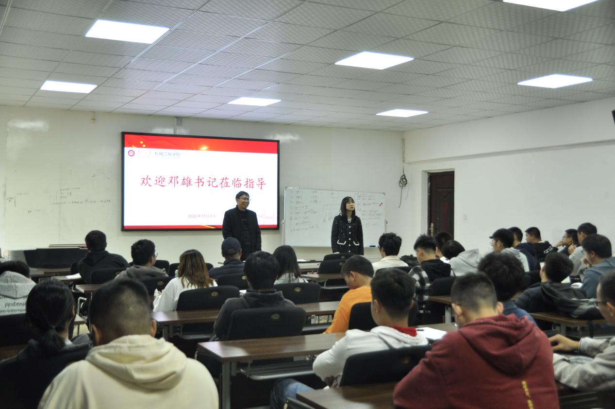 機械工程學院黨委副書記廖燁對鄧雄書記表示熱烈歡迎,并對他前來指導看望學生表示衷心感謝。