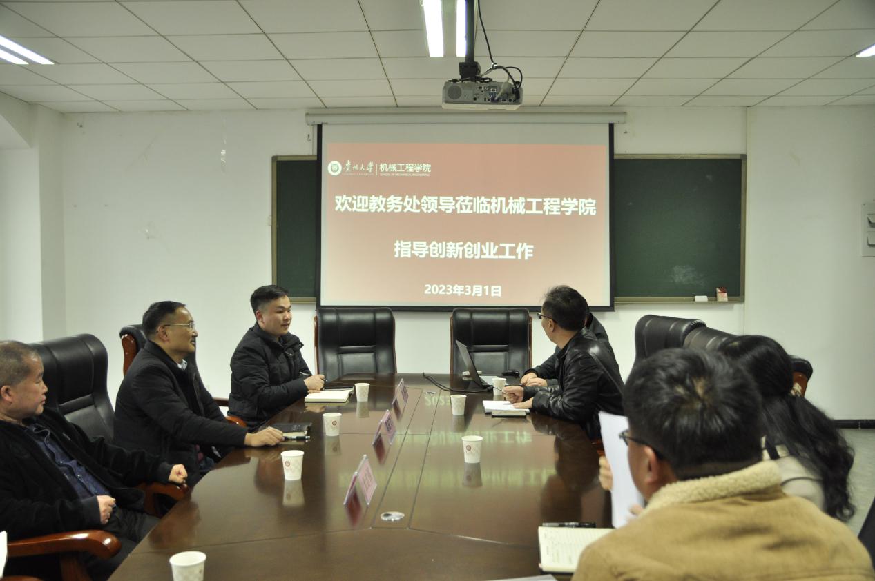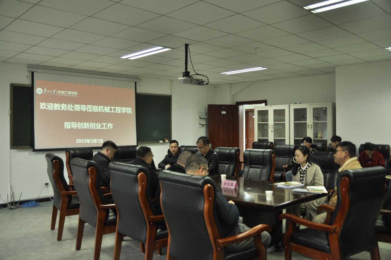 機械工程網站訊(記者 王楚剛|攝影 王楚剛)3月1日下午,貴州大學教務處領導蒞臨我院指導學生創(chuàng)新創(chuàng)業(yè)工作。教務處副處長黎應飛、科長王中杰、副科長余志強、曾建文老師,機械工程學院副院長李家春出席會議,教務科、學生科老師相關老師及部分學生代表參加會議。