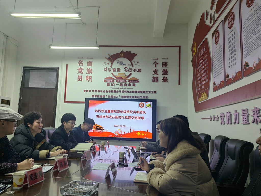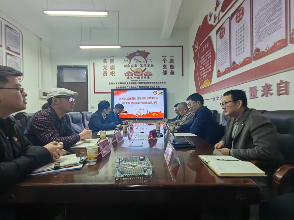12月13日,貴州大學(xué)黨委正處級組織員董蔚然攜我支部支委成員與材料與冶金學(xué)院高分子材料與工程教研室教工黨支部開展黨建交流。材料與冶金學(xué)院黨委書記劉劍、正處級組織員熊玉竹以及高分子材料與工程教研室教工黨支部全體黨員參加活動。活動由全國高?!半p帶頭人”教師黨支部書記工作室負(fù)責(zé)人、高分子材料與工程教研室教工黨支部書記謝海波主持。