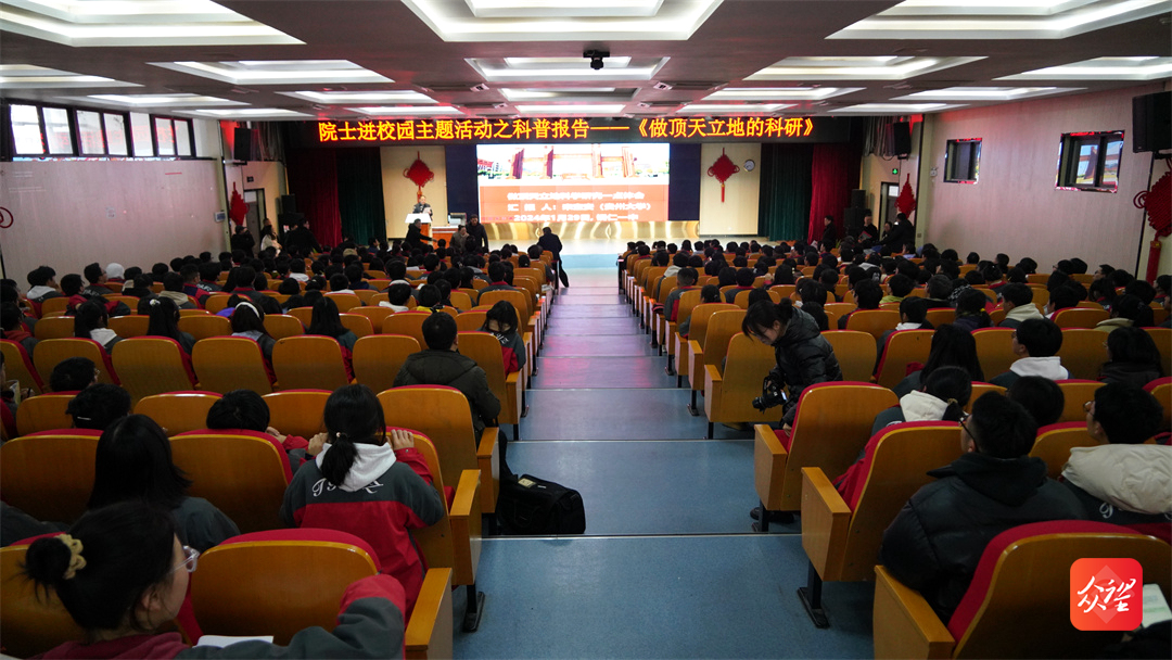 校長宋寶安院士以《做頂天立地的科研》為題為同學(xué)們開展講座,他向銅仁一中的學(xué)子介紹了貴州大學(xué)的基本情況、發(fā)展優(yōu)勢和辦學(xué)前景,并結(jié)合自己的求學(xué)經(jīng)歷、工作經(jīng)驗以及自身在綠色農(nóng)藥研究領(lǐng)域的經(jīng)歷指出,農(nóng)藥的發(fā)展對于農(nóng)業(yè)發(fā)展具有至關(guān)重要的作用,當(dāng)前我國面臨復(fù)雜多變的國際環(huán)境,糧食安全是國家安全的重要保障,強調(diào)要保證糧食安全,就必須要大力推動我國農(nóng)業(yè)獨立發(fā)展和科技創(chuàng)新,以此告訴大家一個人的成功必須扎根祖國大地,必須胸懷“國之大者”,心系“民之所向”。最后,他寄語廣大師生要“學(xué)會感恩,學(xué)會堅持,學(xué)會團結(jié),增強志氣、骨氣、底氣,做頂天立地的科學(xué)研究,以實現(xiàn)中華民族偉大復(fù)興為己任,不負(fù)韶華、不負(fù)夢想?!?/span>