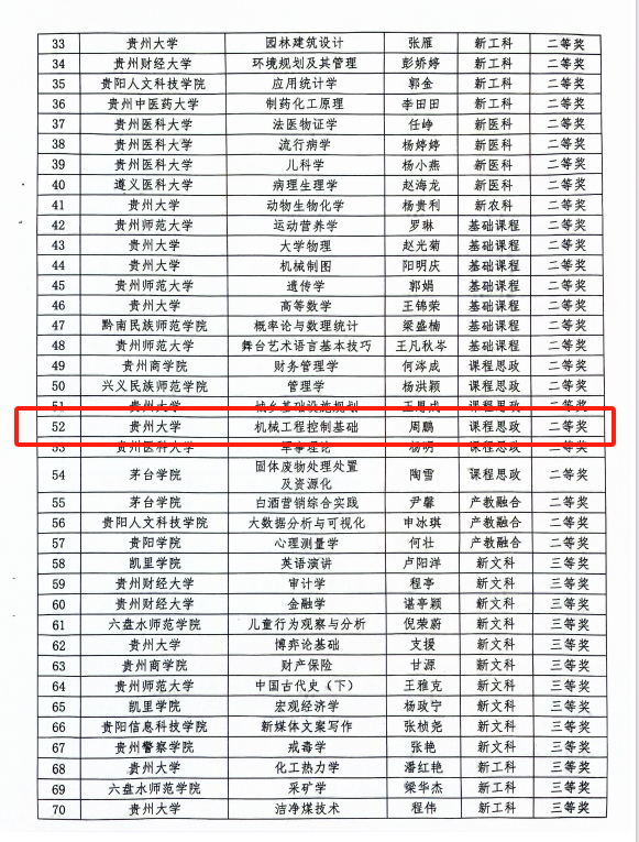 2024年4月,第四屆貴州省高校教師教學(xué)創(chuàng)新大賽在貴州大學(xué)圓滿舉行,我支部書記周鵬同志喜獲課程思政組省級(jí)二等獎(jiǎng)。高校教師教學(xué)創(chuàng)新大賽是高校教師教育的重要教學(xué)賽事,是以賽促教的重要平臺(tái)。今年比賽中,機(jī)械工程學(xué)院張富貴老師喜獲省級(jí)一等獎(jiǎng)、陽(yáng)明慶和周鵬老師喜獲省級(jí)二等獎(jiǎng),實(shí)現(xiàn)了機(jī)械工程學(xué)院在該項(xiàng)教師教學(xué)競(jìng)賽中省級(jí)獲獎(jiǎng)零的突破。