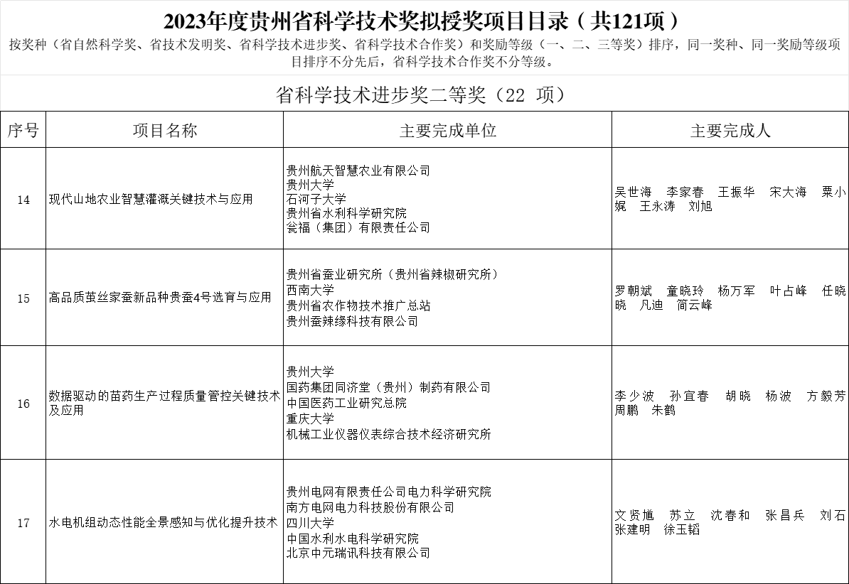 2024年3月,2023年度貴州省科技進(jìn)步獎(jiǎng)擬授獎(jiǎng)項(xiàng)目公示發(fā)布,我支部書(shū)記周鵬同志所在團(tuán)隊(duì)項(xiàng)目“數(shù)據(jù)驅(qū)動(dòng)的苗藥生產(chǎn)過(guò)程質(zhì)量管控關(guān)鍵技術(shù)及應(yīng)用”獲貴州省科技進(jìn)步二等獎(jiǎng)(周鵬排名第六)。多年來(lái),周鵬所在團(tuán)隊(duì)與國(guó)藥集團(tuán)同濟(jì)堂(貴州)制藥有限公司展開(kāi)了深入而持久的合作,一同申報(bào)并完成了工信部智能制造新模式應(yīng)用項(xiàng)目——中藥制劑全流程智能制造新模式應(yīng)用?;谠擁?xiàng)目的成功實(shí)施,項(xiàng)目成果獲2022年度教育部科技進(jìn)步二等獎(jiǎng)1項(xiàng),并獲得中國(guó)國(guó)際大數(shù)據(jù)產(chǎn)業(yè)博覽會(huì)2023優(yōu)秀科技成果、貴州省十大優(yōu)秀科技成果等榮譽(yù)。