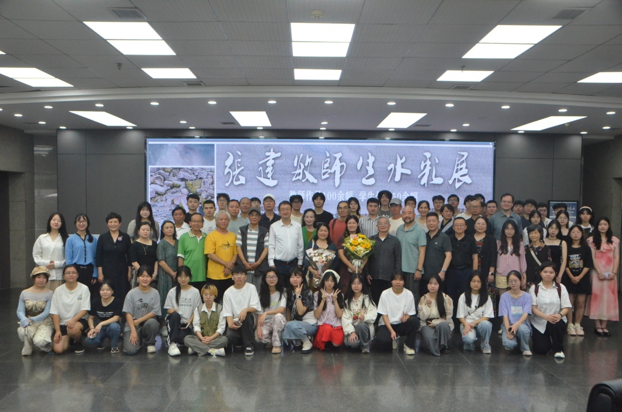 與會畫家、學(xué)院領(lǐng)導(dǎo)和參展學(xué)生和看展學(xué)生們一起合影留念