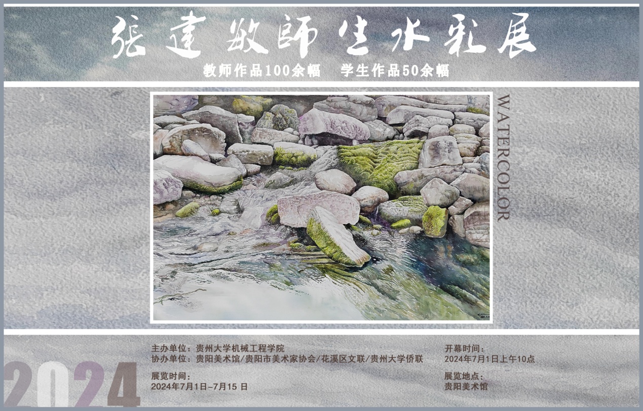 2024年7月1日上午,由貴州大學(xué)機械工程學(xué)院主辦,貴陽美術(shù)館、貴陽市美術(shù)家協(xié)會及花溪區(qū)文聯(lián)、貴州大學(xué)僑聯(lián)協(xié)辦的“張建敏師生水彩展”在貴陽美術(shù)館隆重開幕。