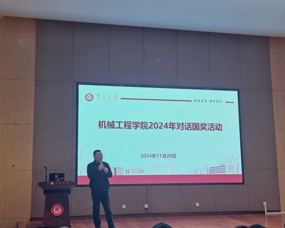 為深入學習貫徹黨的二十屆三中全會精神,加強研究生思想引領(lǐng)與學風建設(shè)。貴州大學機械工程學院于2024年11月20日中午13點在學院圓形報告廳舉辦了2024年研究生“對話國獎”主題分享會。分享會由研究生科田森老師主持,機械學院2023級、2024級全體研究生參與活動。