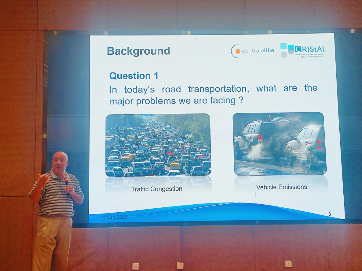 A. EL KAMEL教授首先介紹了智能交通系統(tǒng)(ITS)的背景和關(guān)鍵方面。他指出,當(dāng)前道路交通面臨諸多挑戰(zhàn),如交通擁堵和車輛排放問題。這些問題不僅影響交通效率,還對(duì)環(huán)境和人類健康造成負(fù)面影響。他強(qiáng)調(diào),通過智能交通系統(tǒng)的控制與優(yōu)化,可以有效緩解這些問題。