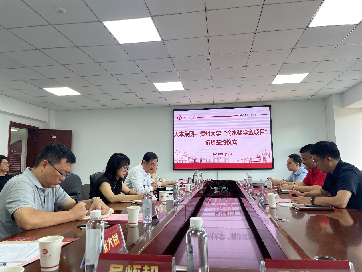 為進一步加強項目合作,雙方就《貴州大學人本滴水獎學金評定實施細則》進行了深入討論,在與會人員的共同見證下,雙方代表簽訂了捐贈協(xié)議。