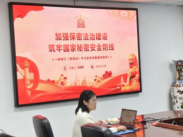 最后,由先進(jìn)技術(shù)研究院崔雯雯老師為同學(xué)們進(jìn)行了專(zhuān)題輔導(dǎo)授課。崔老師以“加強(qiáng)保密法治建設(shè),筑牢國(guó)家秘密安全防線”為主題,圍繞新修訂《保密法》的核心要義和重點(diǎn)內(nèi)容進(jìn)行了系統(tǒng)宣講和深入解讀。她結(jié)合高??蒲泄ぷ鞯奶攸c(diǎn),詳細(xì)講解了在日??蒲谢顒?dòng)、涉密人員管理、載體保管、信息公開(kāi)等過(guò)程中可能存在的泄密風(fēng)險(xiǎn)點(diǎn)及防范措施,內(nèi)容詳實(shí),案例生動(dòng),使同學(xué)們對(duì)保密法律法規(guī)有了更清晰的理解,對(duì)如何在實(shí)際科研工作中履行保密職責(zé)有了更明確的認(rèn)識(shí)。