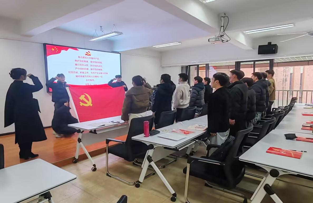 在機(jī)械工程學(xué)院黨委副書記廖燁的領(lǐng)誓下,全體黨員佩戴黨徽,在鮮紅的中國(guó)共產(chǎn)黨黨旗下,新黨員進(jìn)行入黨宣誓,其他黨員重溫入黨誓詞?!拔抑驹讣尤胫袊?guó)共產(chǎn)黨,擁護(hù)黨的綱領(lǐng),遵守黨的章程……”鏗鏘有力的誓言回蕩在活動(dòng)現(xiàn)場(chǎng),每一個(gè)字都凝聚著黨員們對(duì)黨的忠誠(chéng)與承諾。