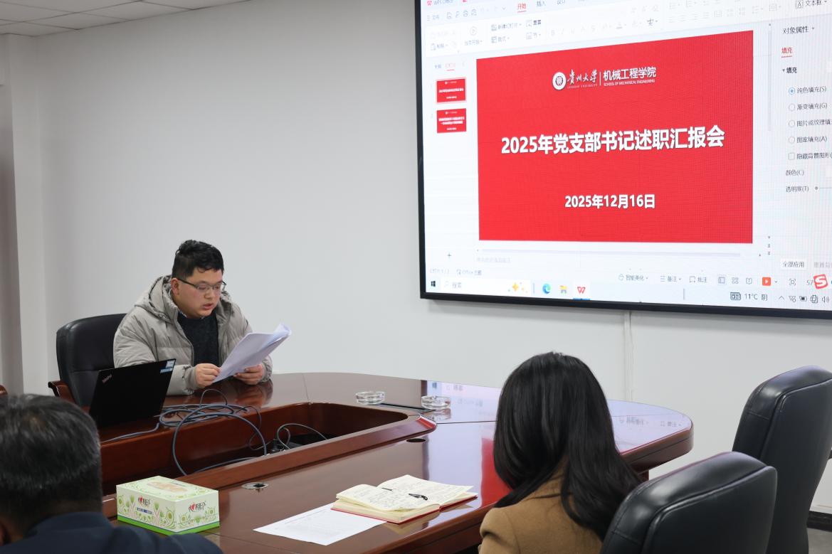 為全面落實(shí)新時(shí)代黨的建設(shè)總要求,扎實(shí)推進(jìn)基層黨組織標(biāo)準(zhǔn)化規(guī)范化建設(shè),12月16日,我院召開(kāi)2025年度黨建工作述職會(huì)議。學(xué)院黨委領(lǐng)導(dǎo)班子成員、各黨支部書(shū)記參加會(huì)議。會(huì)議聚焦黨建工作重點(diǎn)任務(wù),全面總結(jié)成效、查找問(wèn)題、明確努力方向,推動(dòng)學(xué)院黨建工作提質(zhì)增效。