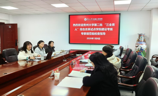 2026年1月8日,貴州大學機械工程學院“‘智’造天地創(chuàng)新賦能——‘三全育人’綜合改革試點工作成果驗收評審會”在學院順利舉行。由三位校內專家組成的驗收評審組,對我院“三全育人”綜合改革試點工作成果進行專項驗收,經(jīng)嚴格評審,我院試點建設工作圓滿通過驗收,考核合格。